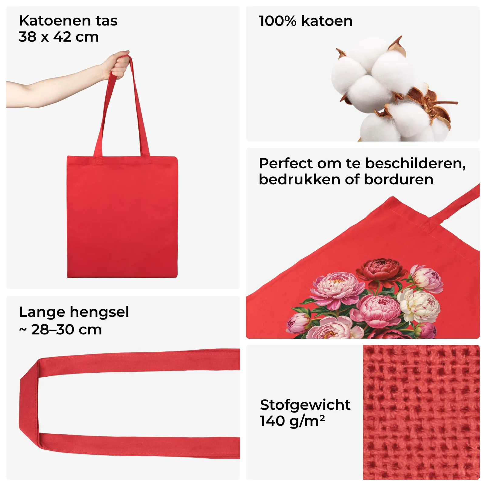 1 st. Een katoenen tas 38 x 42 cm met lange hengsels - rood