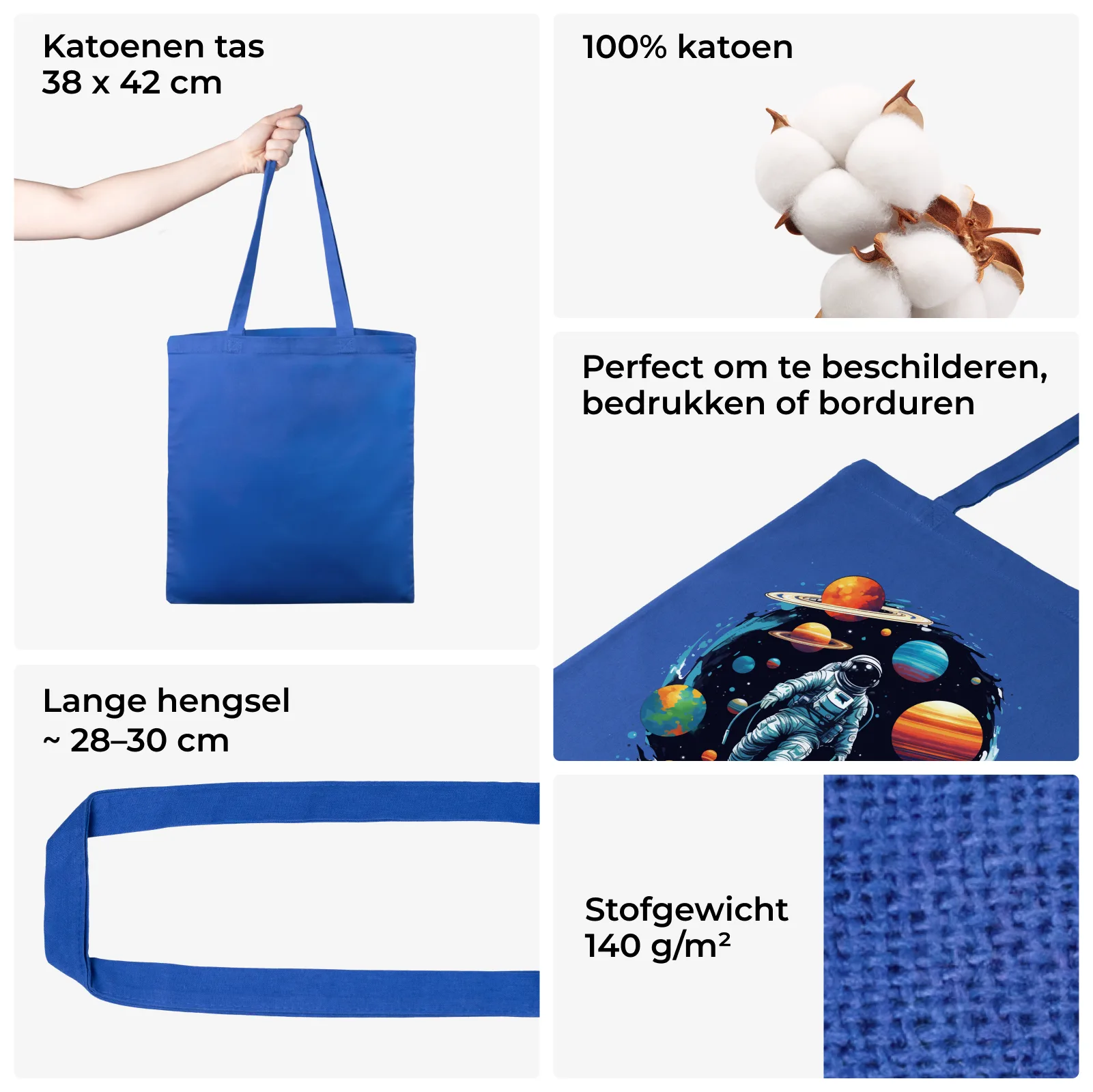 1 st. Een katoenen tas 38 x 42 cm met lange hengsels - blauw