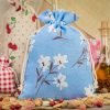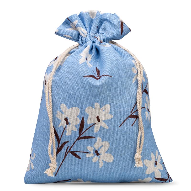 1 stuk Zak à la linnen met print 22 x 30 cm - natuurlijk / blauwe bloemen