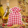 1 stuk Zakje à la linnen met print 15 x 20 cm - natuurlijk / rode trellis