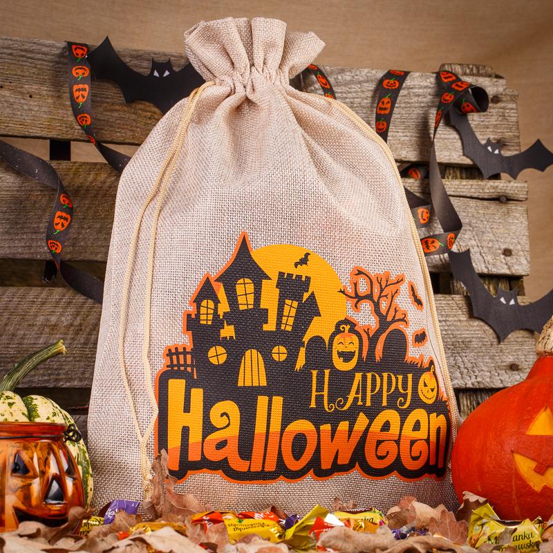 1 stuk Zakjes Halloween 1 / jute 30 x 40 cm - lichte natuurlijke kleur