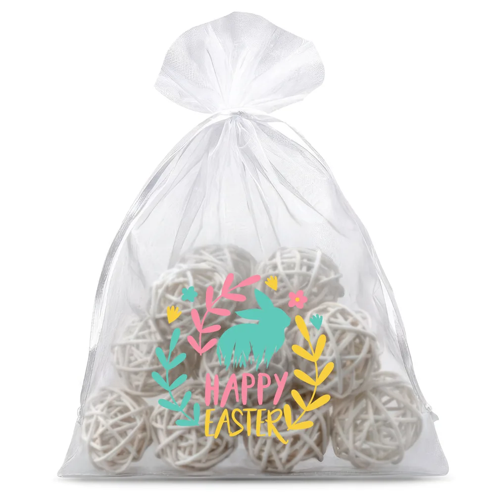Organza zakjes 22 x 30 cm voor Pasen, wit met bedrukking (10 stuks)