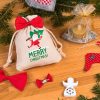 Bestel een set van 10 kleine linnen zakjes met dubbel katoenen koord in de zoom! Wij bieden linnen zakjes aan in de afmetingen 12 x 15 cm. Deze herbruikbare linnen zakjes zijn versierd met een feestelijke opdruk van de Kerstman met een kerstboom en de woorden "Merry Christmas!".
