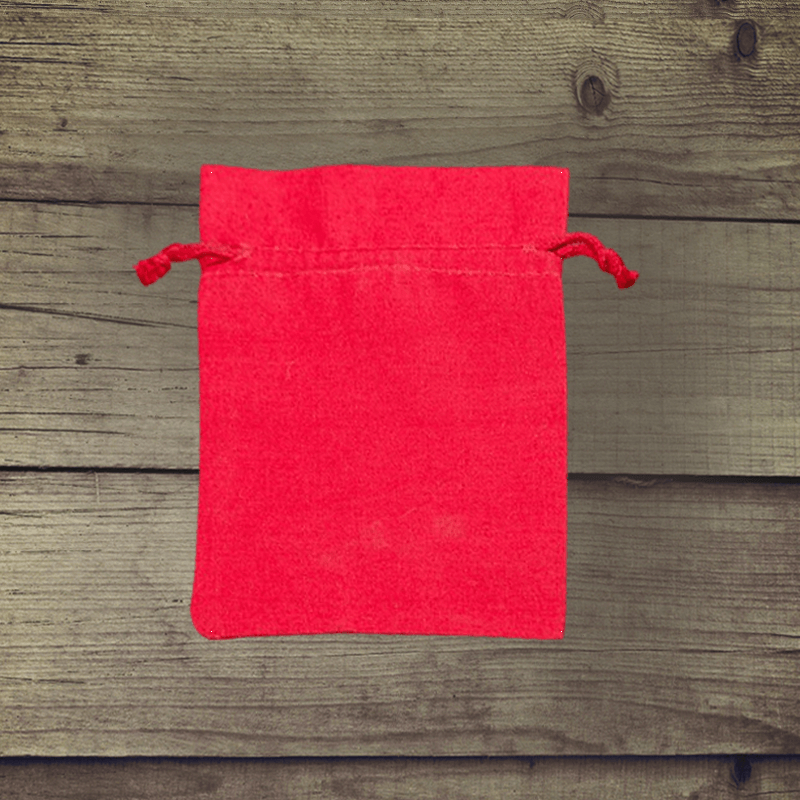 Wij bieden een set van 100% katoenen zakjes in rood. U kunt deze veelzijdige zakjes met een trekkoord gebruiken als productverpakking, als decoratie-element of als cadeauzakje.