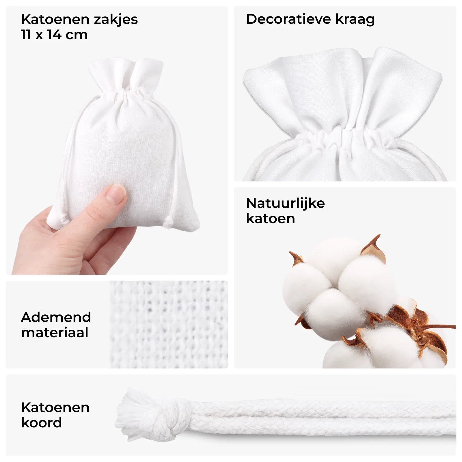 10 stuks Katoenen zakjes 11 x 14 cm - wit
