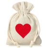 Charmante zakjes met hartje in linnenstijl. Wij bieden charmante, kleine à la linnen zakjes van 9 x 12 cm. Deze zakjes hebben we genaaid van materiaal in natuurlijke kleur, dat op linnen lijkt, en versierd met een rode, vilten applicatie in de vorm van een hartje. De zakjes hebben een snel en gemakkelijk sluitsysteem met een trekkoord van dubbel katoenen koord met een decoratieve vlecht. In de verpakking zitten 10 stuks stoffen zakjes.