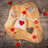 Overtuig uzelf dat u deze kleine zakjes van stof versierd met hartjes op vele manieren kunt gebruiken! In uw linnenachtige zakjes met hartje kunt u onder andere kleine cadeautjes verpakken voor Valentijnsdag, Vrouwendag, verjaardagen, jubilea. U kunt er ook kleine geschenken in doen die worden gegeven als bedankjes voor gasten op bruiloften, doopfeesten of communies. Ze zijn ook perfect als verpakking voor handwerk, bijvoorbeeld handgemaakte geurkaarsen van het type theelicht of sieraden. Stoffen zakjes met een rood hart zijn ook perfect als organizers voor souvenirs die worden bewaard in een doosje of een herinneringenkist.