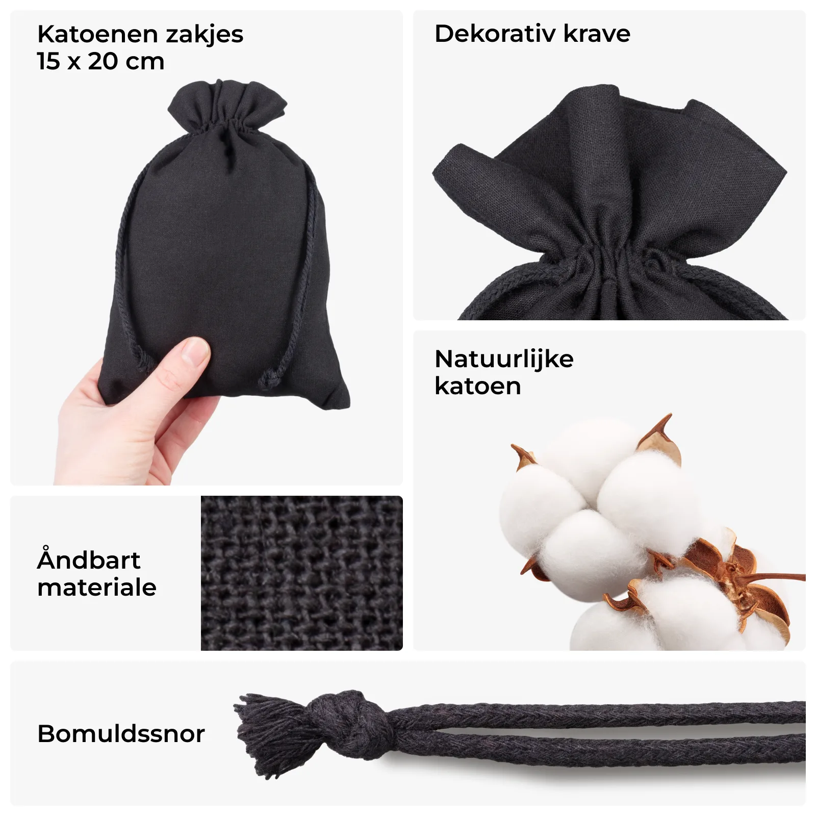 5 stuks Katoenen zakjes 15 x 20 cm - zwart
