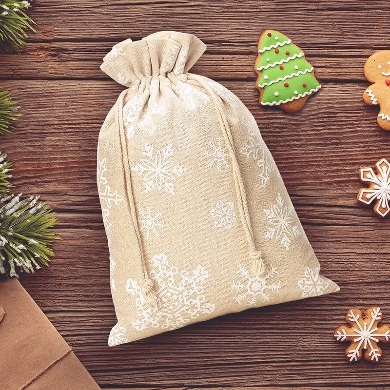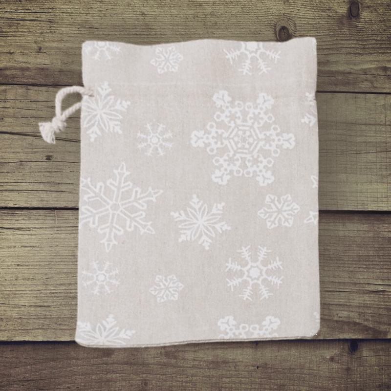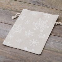 5 stuks Zakjes à la linnen met print 18 x 24 cm - natuurlijke kleur / sneeuw