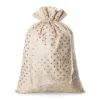 Wil je jouw cadeaus op een bijzondere manier overhandigen? Deze ruime jute zak maakt van elk geschenk een belevenis. Gemaakt van een hoogwaardige stof met natuurlijke jute-look en een glinsterende gouden stippenprint, straalt deze zak warmte, luxe en feestelijkheid uit.