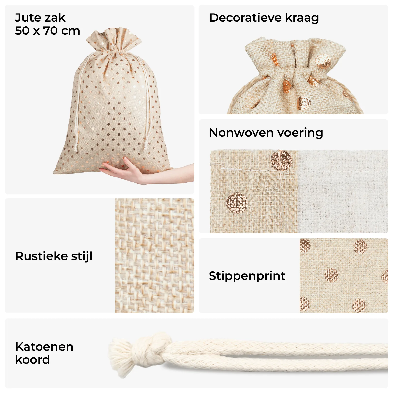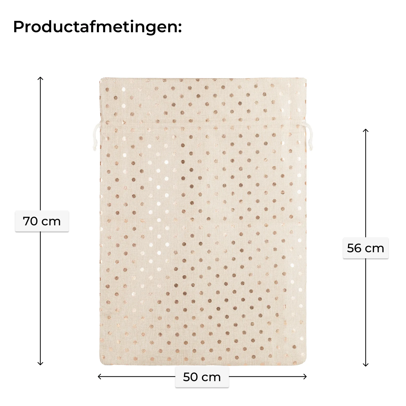 Grote jute zak 50x70 cm met gouden stippen - stijlvolle verpakking voor royale cadeaus