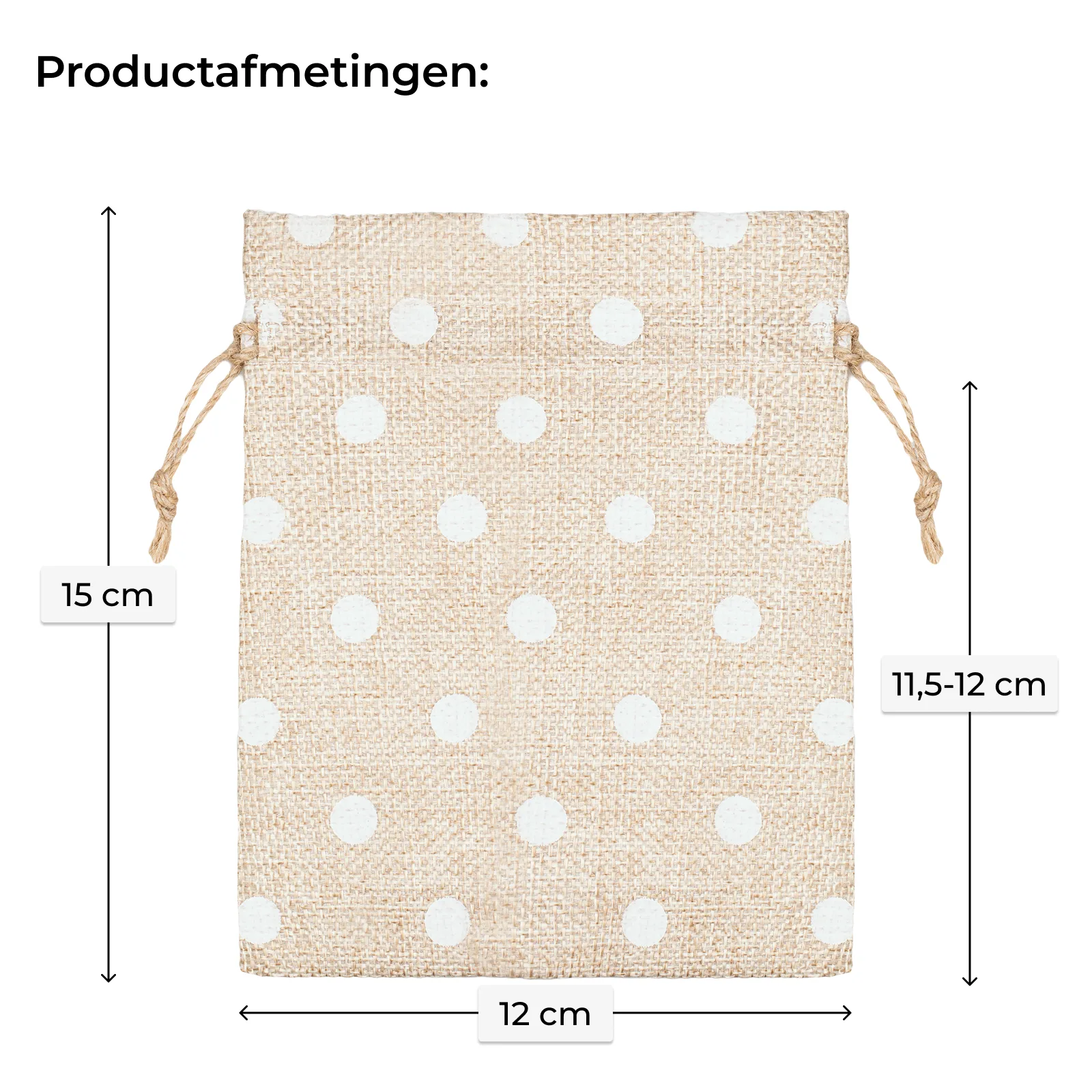 Jute zakjes 12x15 cm - witte stippen & rustieke charme voor jouw geschenken