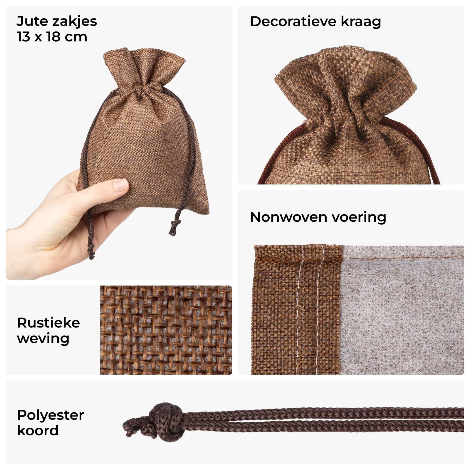 10 stuks Jute zakjes 13 x 18 cm - donkere natuurlijke kleur