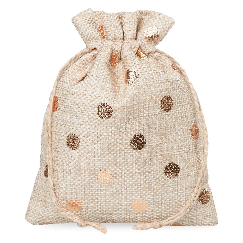 Jute zakjes met stippen - 12x15 cm, set van 10 - natuurlijk & feestelijk verpakt