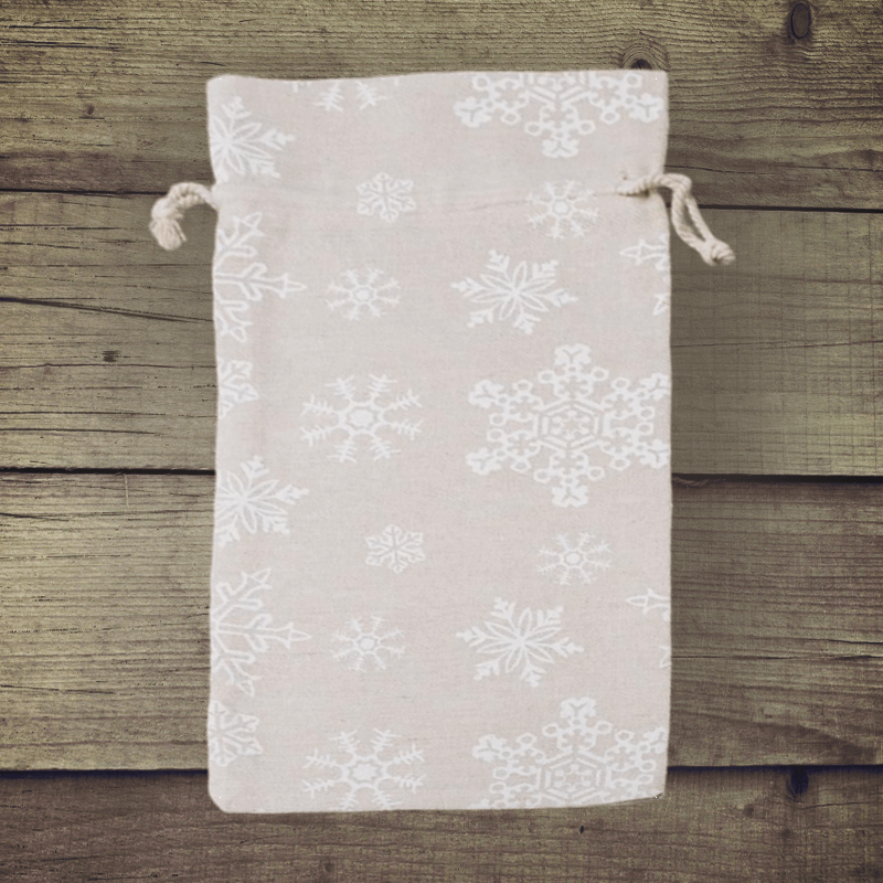1 stuk Zakjes à la linnen met print 16 x 37 cm - natuurlijke kleur / sneeuw