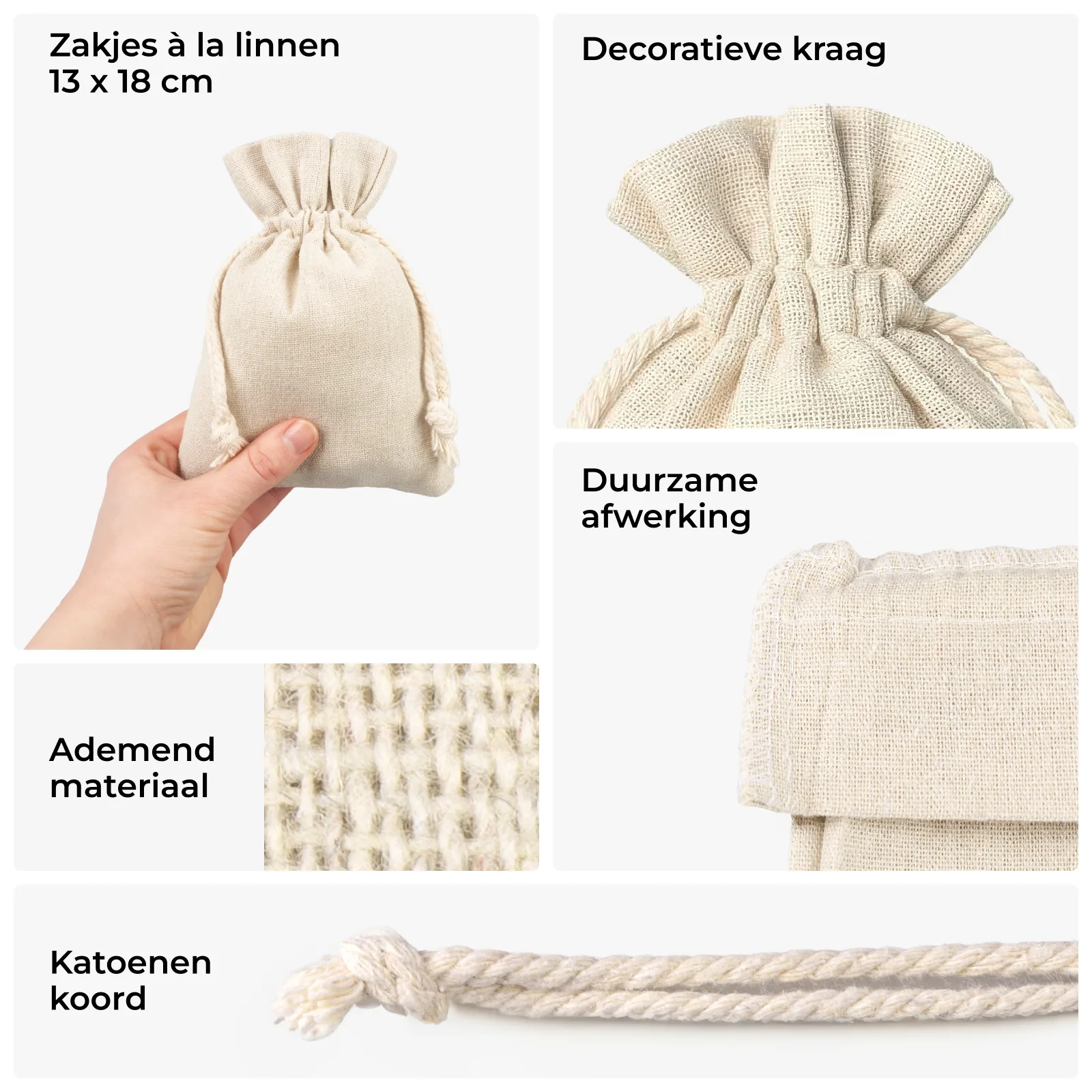 10 stuks Zakjes à la linnen 13 x 18 cm - natuurlijke kleur