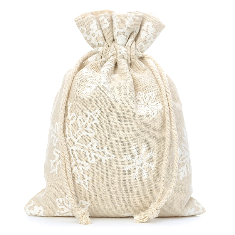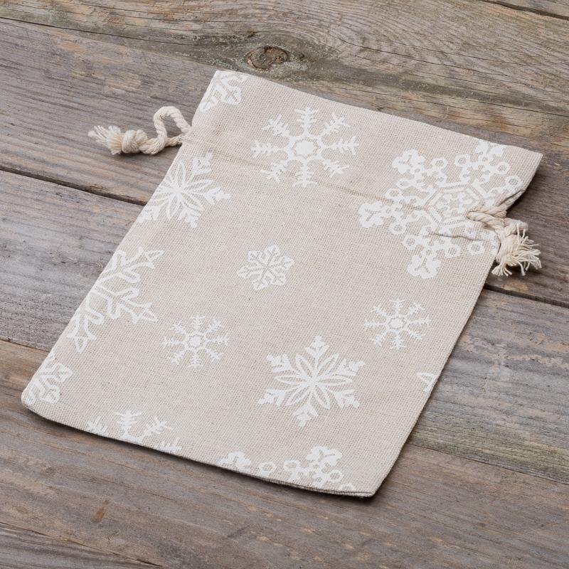 10 stuks Zakjes à la linnen met print 15 x 20 cm - natuurlijke kleur / sneeuw