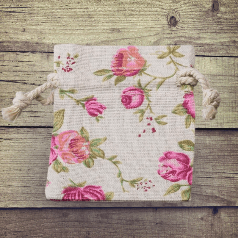 10 stuks Zakjes à la linnen met print 8 x 10 cm - natuurlijke kleur / rozen