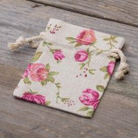10 stuks Zakjes à la linnen met print 8 x 10 cm - natuurlijke kleur / rozen