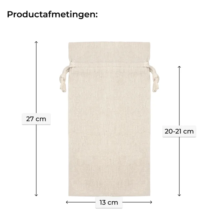 De hier gepresenteerde zakjes onderscheidt zich door een hoogwaardige afwerking (duurzame stof, sterke stiksels) en een origineel uiterlijk. De stof voelt aangenaam aan en zorgt voor een goede luchtcirculatie. Het is bovendien zeer duurzaam en bestand tegen schuren en kreuken. Hier bieden wij stoffen verpakkingen met katoen aan, die zowel qua structuur als qua materiaalkleur natuurlijk linnen imiteren. Door de toevoeging van synthetische vezels is dit echt een duurzame, herbruikbare verpakking!