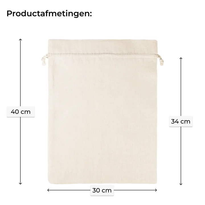 Ontdek onze veelzijdige grote stoffen zakken met dubbel katoenen trekkoord! De verpakking bevat 1 grote zak in naturelkleurig linnen met afmetingen van 30 x 40 cm.