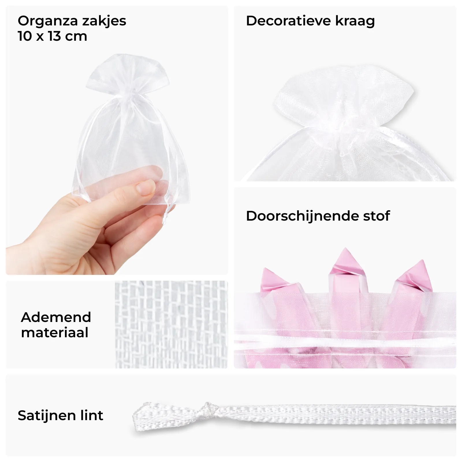 25 stuks Organza zakjes 10 x 13 cm - wit