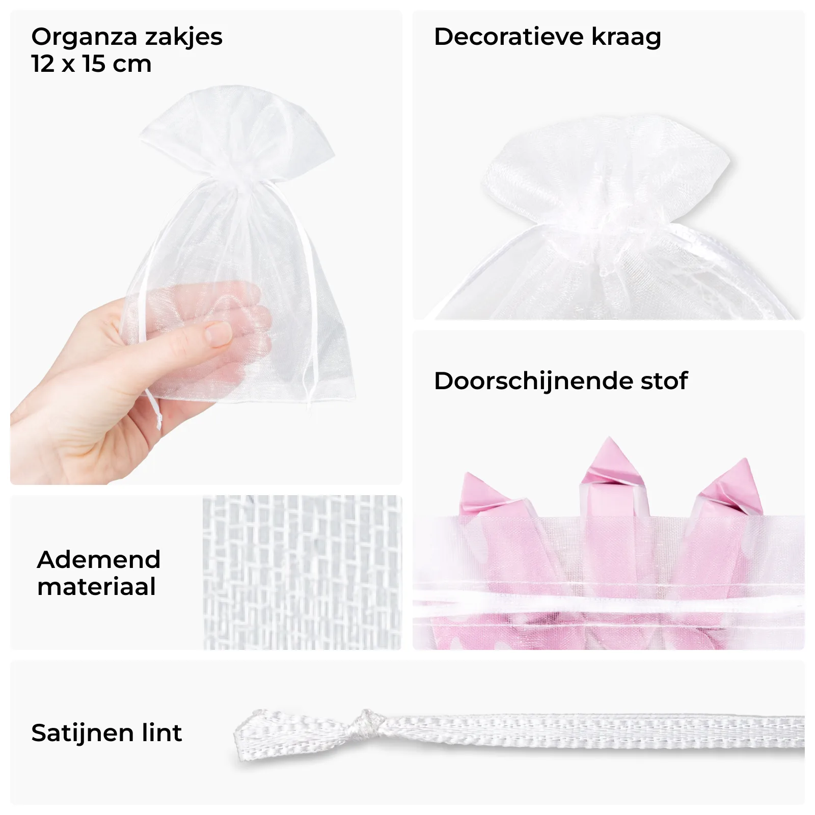 25 stuks Organza zakjes 12 x 15 cm - wit