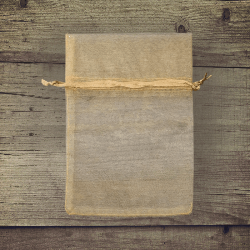 Een set van 25 stuks middelgrote organzazakjes in de kleur goud met afmetingen 13 x 18 cm. Ze worden ook tulen zakjes genoemd of zakjes van tule.