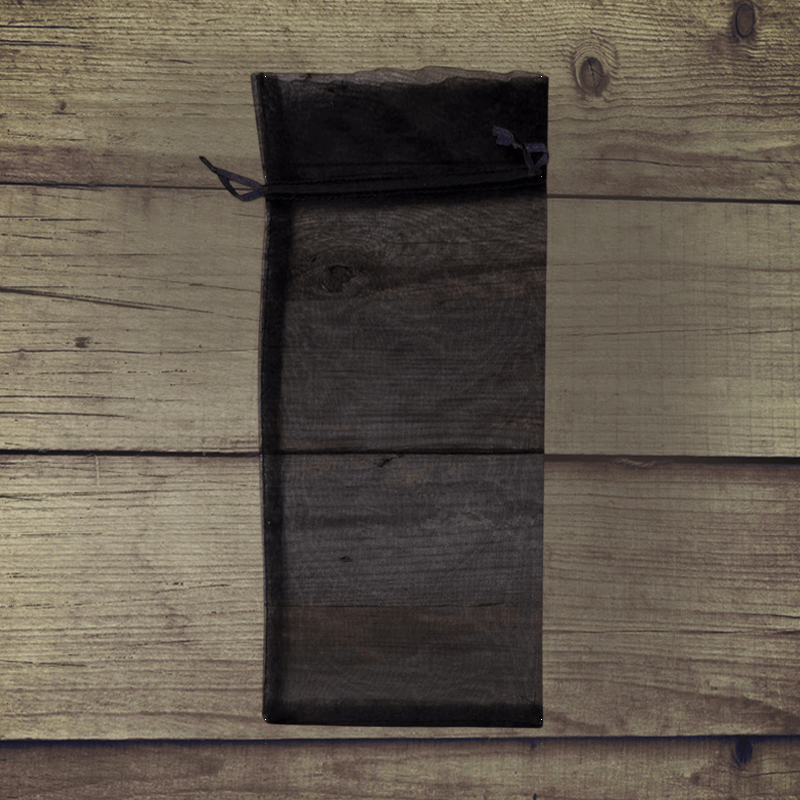 Een set van 10 stuks middelgrote organzazakjes in de kleur zwart met afmetingen 16 x 37 cm. Ze worden ook tulen zakjes genoemd of zakjes van tule.