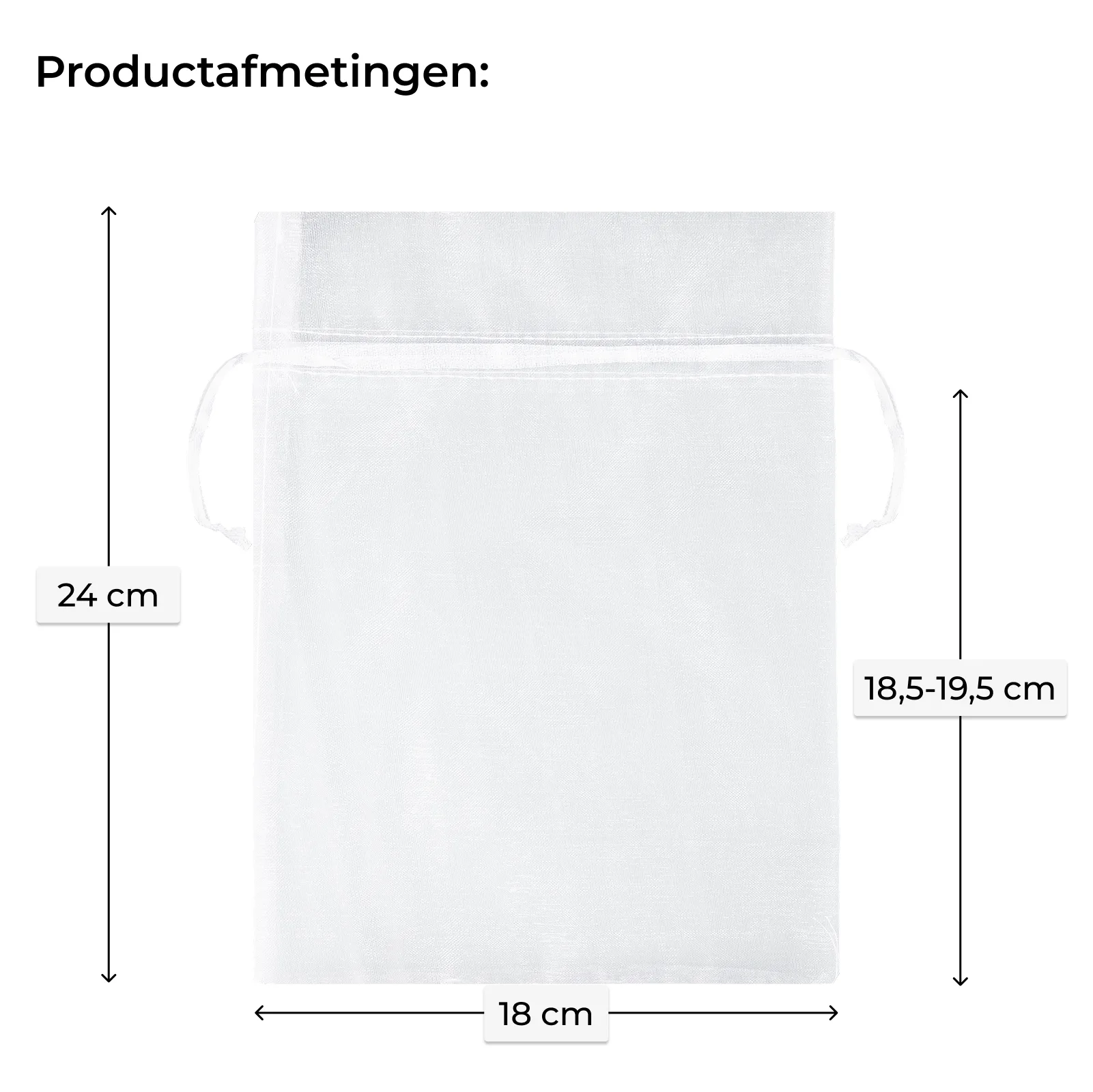 De set bevat 10 stuks organza zakjes, elk met een afmeting van 18 x 24 cm, in de kleur wit. Witte zakjes zijn veelzijdige producten die kunnen worden gebruikt om diverse items te presenteren. Ze zijn uitstekend als transparante verpakking voor sieraden, handgemaakte zepen, briefpapier, souvenirfiguurtjes, promotionele geschenken, of monsters van cosmetica en parfums. Vanwege hun delicate kleur worden witte organza zakjes ook vaak gebruikt voor het klaarmaken van kleine geschenken voor bruilofts- of communiegasten.