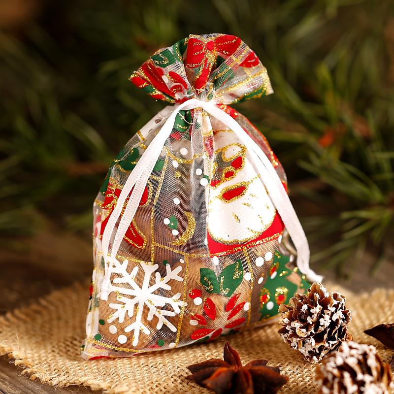 5 stuks Organza zakjes 26 x 35 cm - Kerstmis