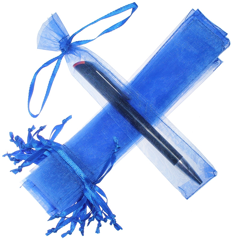 Een praktisch pakket van kleine organzazakjes in de kleur blauw. De afmetingen van eenenkel zakje zijn 3,5 x 19 cm terwijl de hele set bestaat uit 25 stuks. Zo'n hoeveelheid garandeert dat er elke collectie in opgeborgen kan worden.