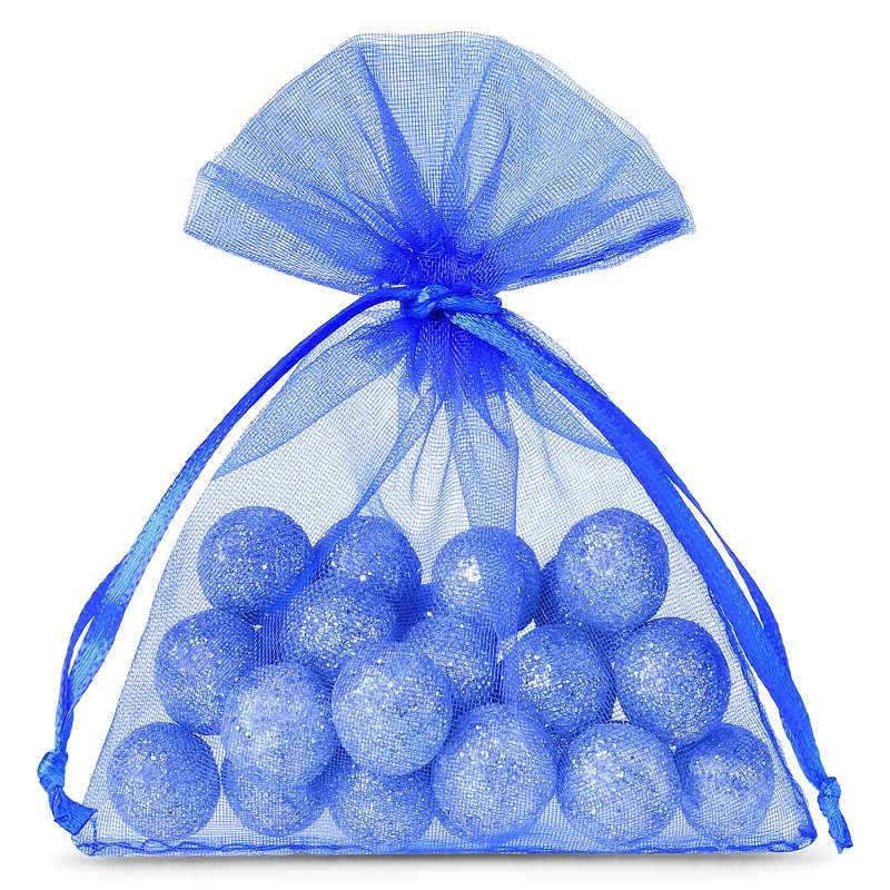 Een set van kleine organzazakjes met afmetingen 7 x 9 cm in de kleur blauw. Dit praktisch pakket bevat 25 stuks, waardoor een eenmalige aankoop langer meegaat.