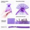 Deze organza zakjes combineren een elegante look met praktische eigenschappen: licht, halfdoorzichtig, veelzijdig en geschikt voor veel gelegenheden. De diepe violetkleur valt op en wordt vaak gekozen voor lavendelproducten, geschenkpakketten en bruiloftsdecoraties.