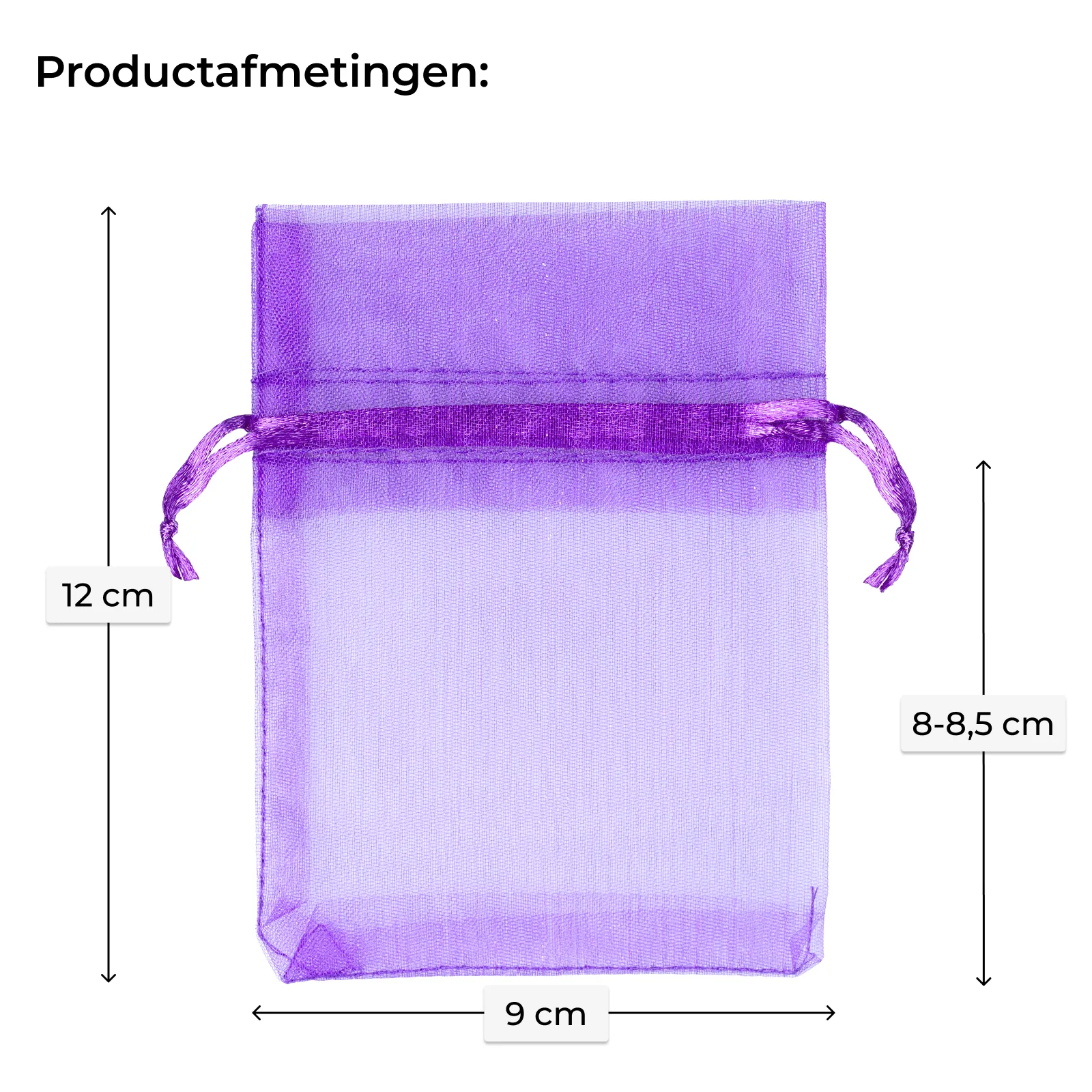 Deze donkerpaarse organza zakjes 9 x 12 cm zijn lichte, elegante mini-verpakkingen voor kleine geschenken, lavendel, sieraden en samples. De set bevat 25 stuks met een dubbel satijnen trekkoord en een decoratieve afwerking boven de tunnel. Dankzij de halftransparante structuur zijn ze populair bij zowel particulieren als bedrijven die op zoek zijn naar stijlvolle, compacte verpakkingen.