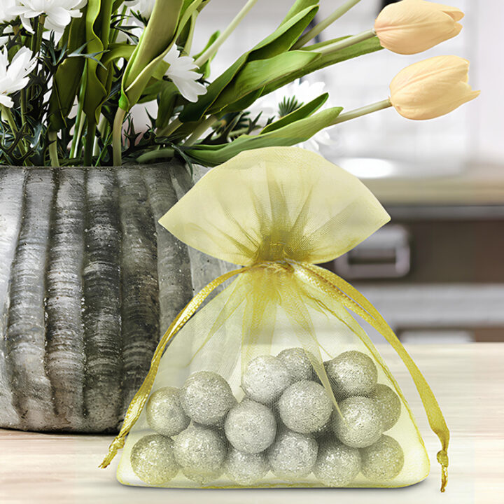 Organzazakjes (ook wel organzabuidels genoemd) zijn een uitstekende manier om zowel kleine voorwerpen als talrijke snuisterijen te verpakken. De solide structuur van organza garandeert veilige opberging terwijl de doorzichtbaarheid ervan ervoor zorgt dat een bepaald pakje niet gedurende vele minuten moet worden gezocht - in plaats daarvan zullen de verpakte voorwerpen al op het eerste gezicht zichtbaar zijn!