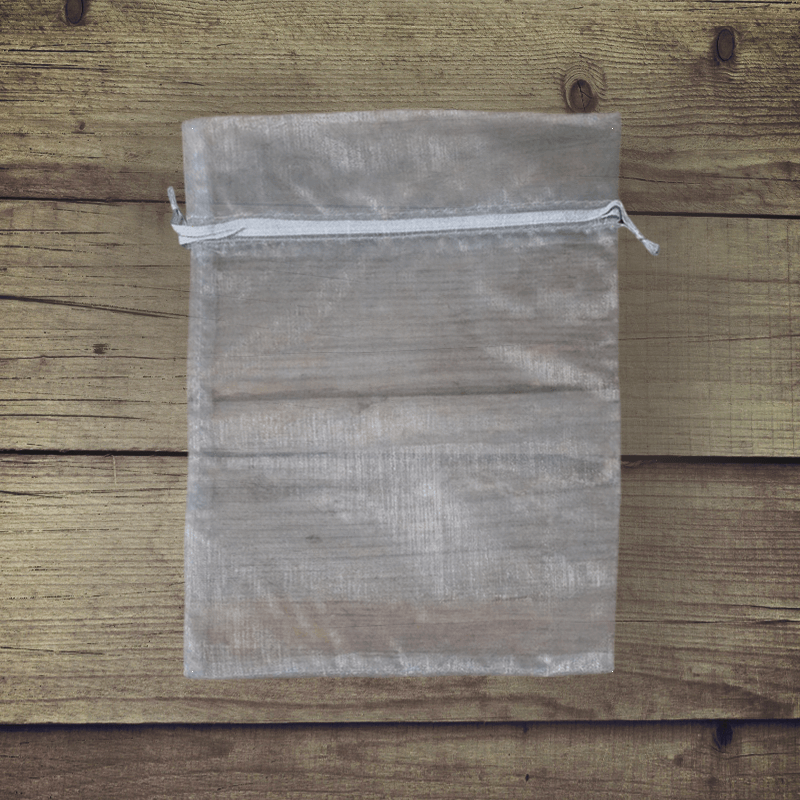 Een set van 10 stuks middelgrote organzazakjes in de kleur zilver met afmetingen 18 x 24 cm. Ze worden ook tulen zakjes genoemd of zakjes van tule.