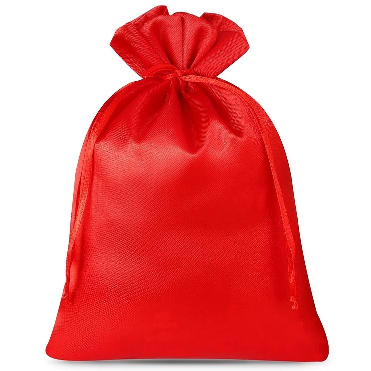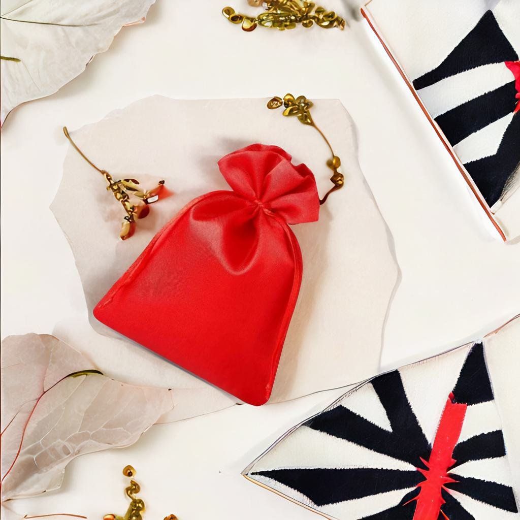 Een collectie van decoratieve zakjes van rood satijn met afmetingen 12 x 15 cm met een hoeveelheid van 10 stuks.