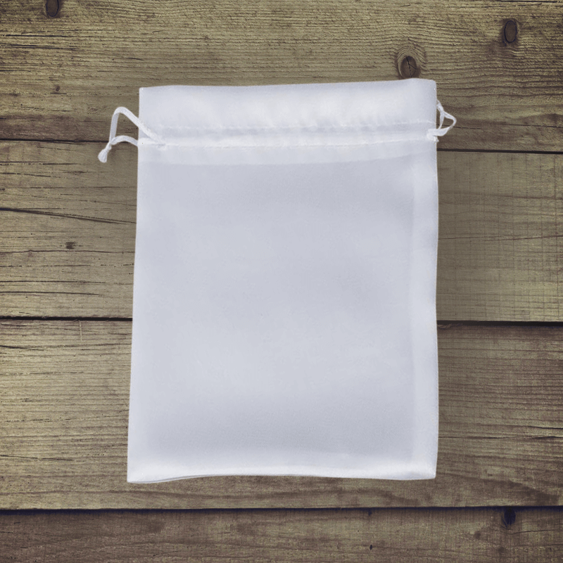 Een pakket van 5 decoratieve satijnen zakjes met afmetingen 15 x 20 cm in de kleur wit.