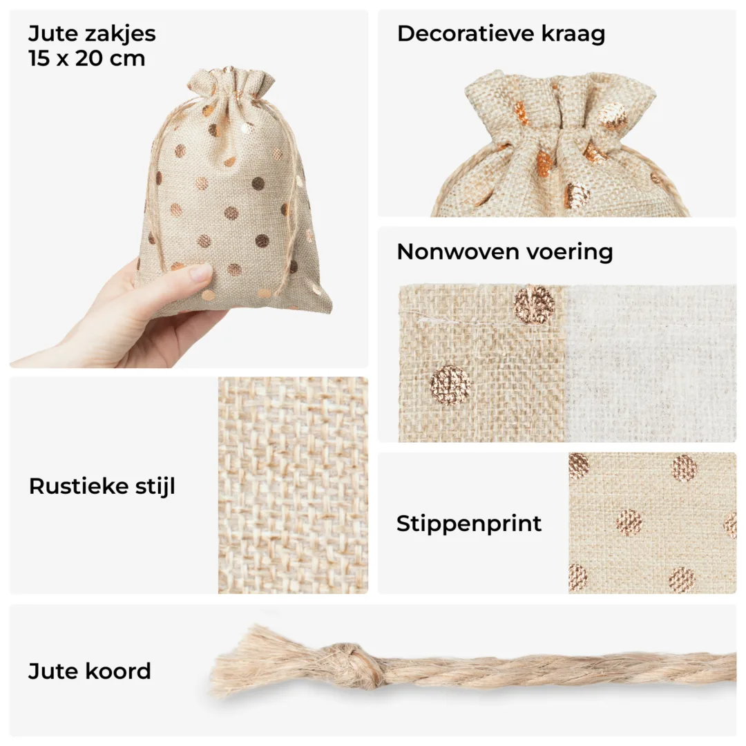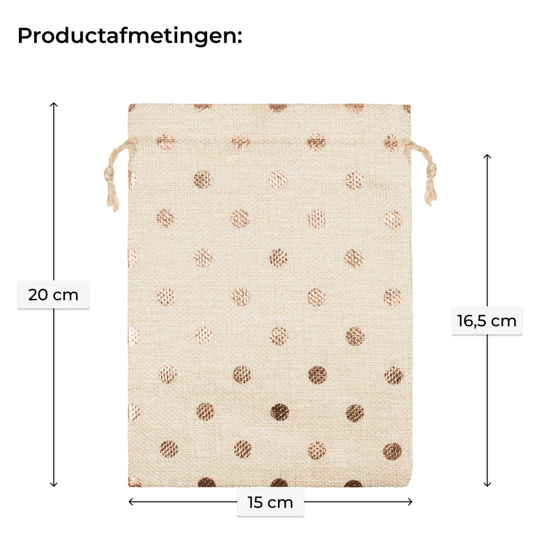 Zakjes in jute-look 15x20 cm met gouden stippen - rustieke en elegante cadeauverpakking